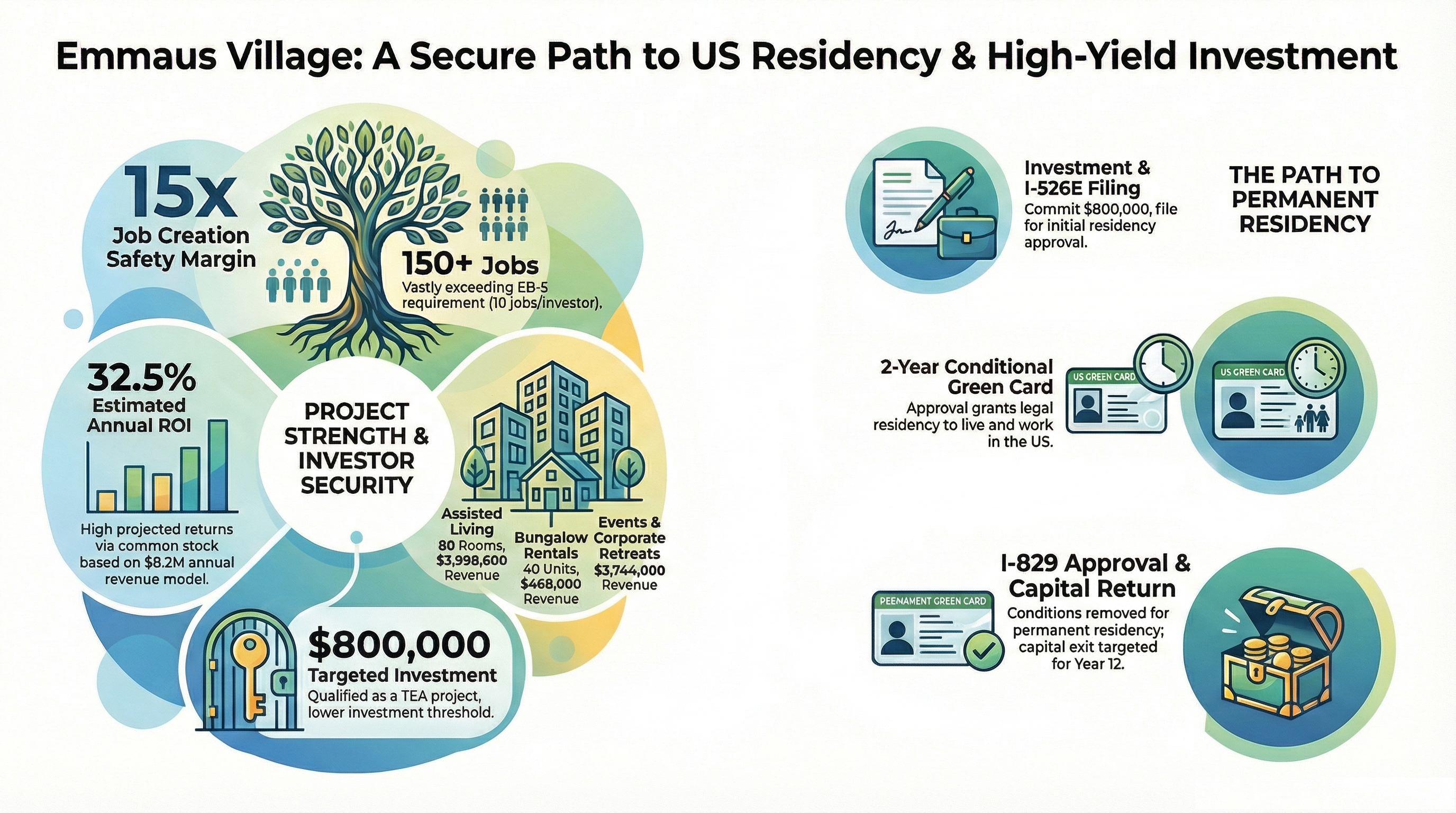 Emmaus Village offers more than social value; it is a gateway to a secure future for your family through the EB-5 Immigrant Investor Program:
